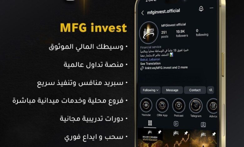 بيروت – في خطوة تعكس تطوّرها المؤسسي، أعلنت شركة MFGinvest عن انتقالها إلى مرحلة جديدة من عملها ترتكز على تعزيز الشفافية وحماية المستثمر، بالتوازي مع توسيع نطاق خدماتها في الأسواق المالية العالمية.